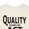 - Design: A sophisticated typographic design with the empowering caption: ‘Quality is an Act, it is not a Habit.’