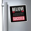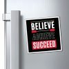 Spread your message of motivation with our Believe, Achieve, Succeed Motivational Magnet. These custom magnets are perfect for attaching to any metallic surface and boldly broadcasting your message. Available in three sizes and with a black backing, these thin and lightweight magnets are perfect for indoor use.