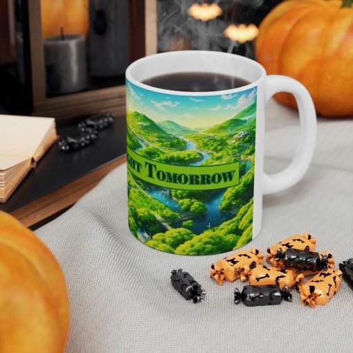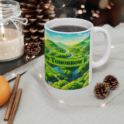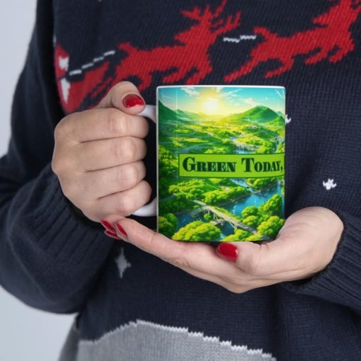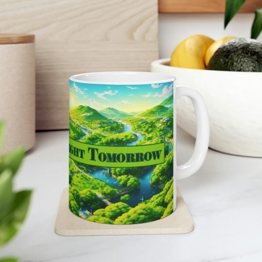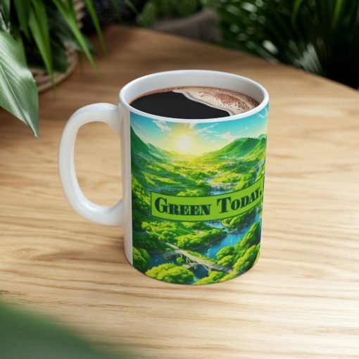 ☕???? Introducing the “Green Today, Bright Tomorrow” Ceramic Mug – Start Your Day with a Sustainable Message! ????????