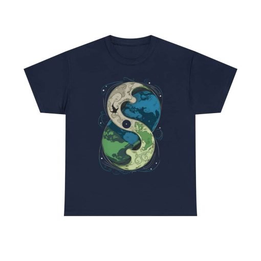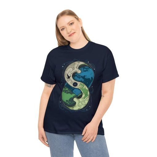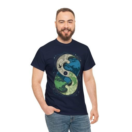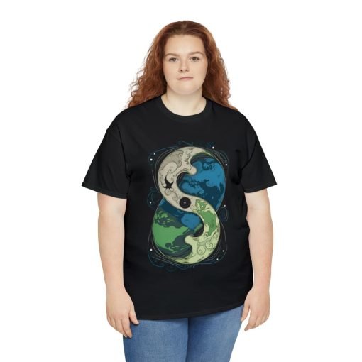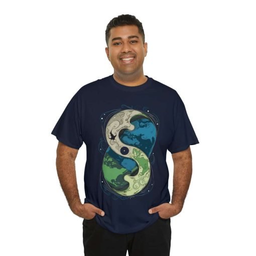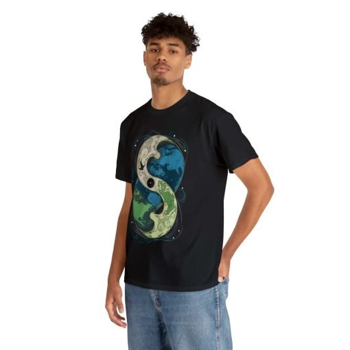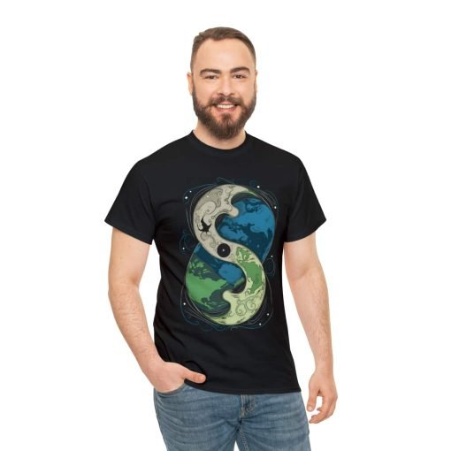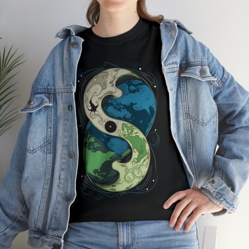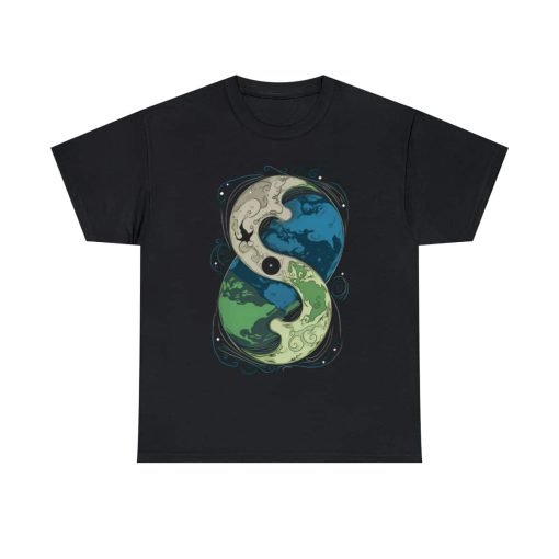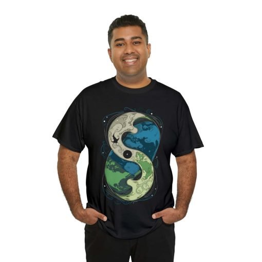 The Cosmic Yin Yang design is an illustrated masterpiece symbolizing Earth in harmony. Crafted with exceptional printing technology, the design features unparalleled vividness and sharpness. Wearing this tee is not just a style statement but a reflection of your individuality and values. The shoulders even feature tape for that extra durability, ensuring your shirt stays excellent, wash after wash.