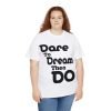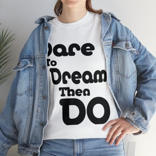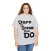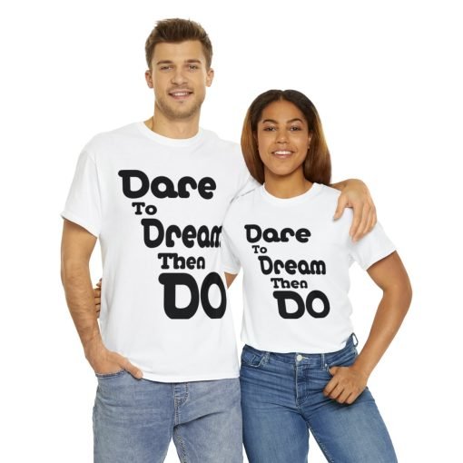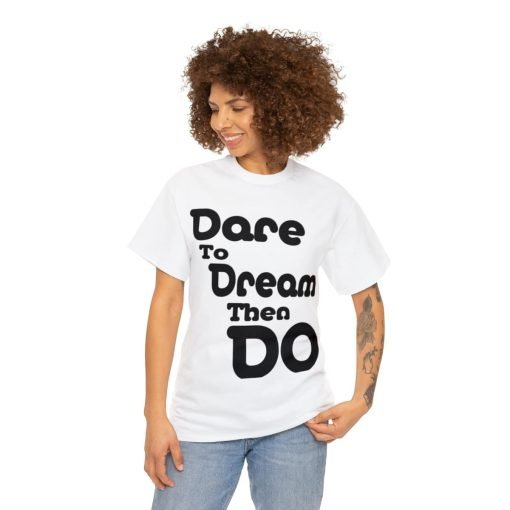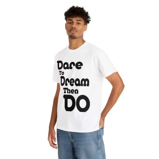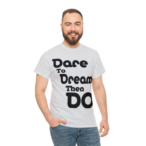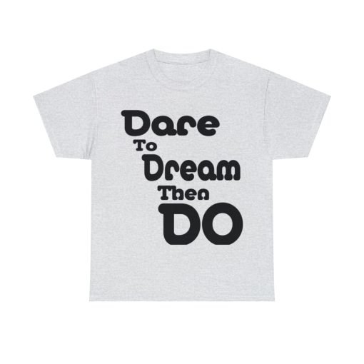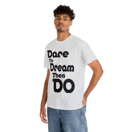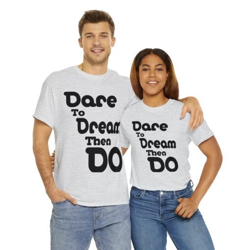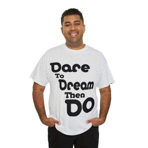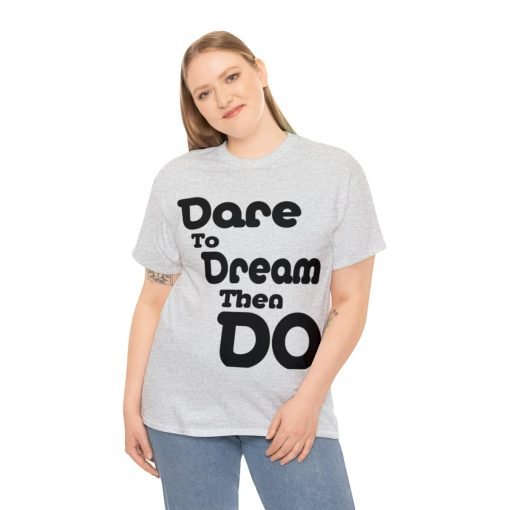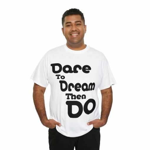Who says basics have to be boring? Meet your new wardrobe essentials: the unisex heavy cotton tee, a game-changer in casual fashion. But this isn’t just any tee; it’s a tee with a message! Featuring the empowering typographic design that reads “Dare To Dream Then Do,” it’s your daily dose of inspiration wrapped in comfort.