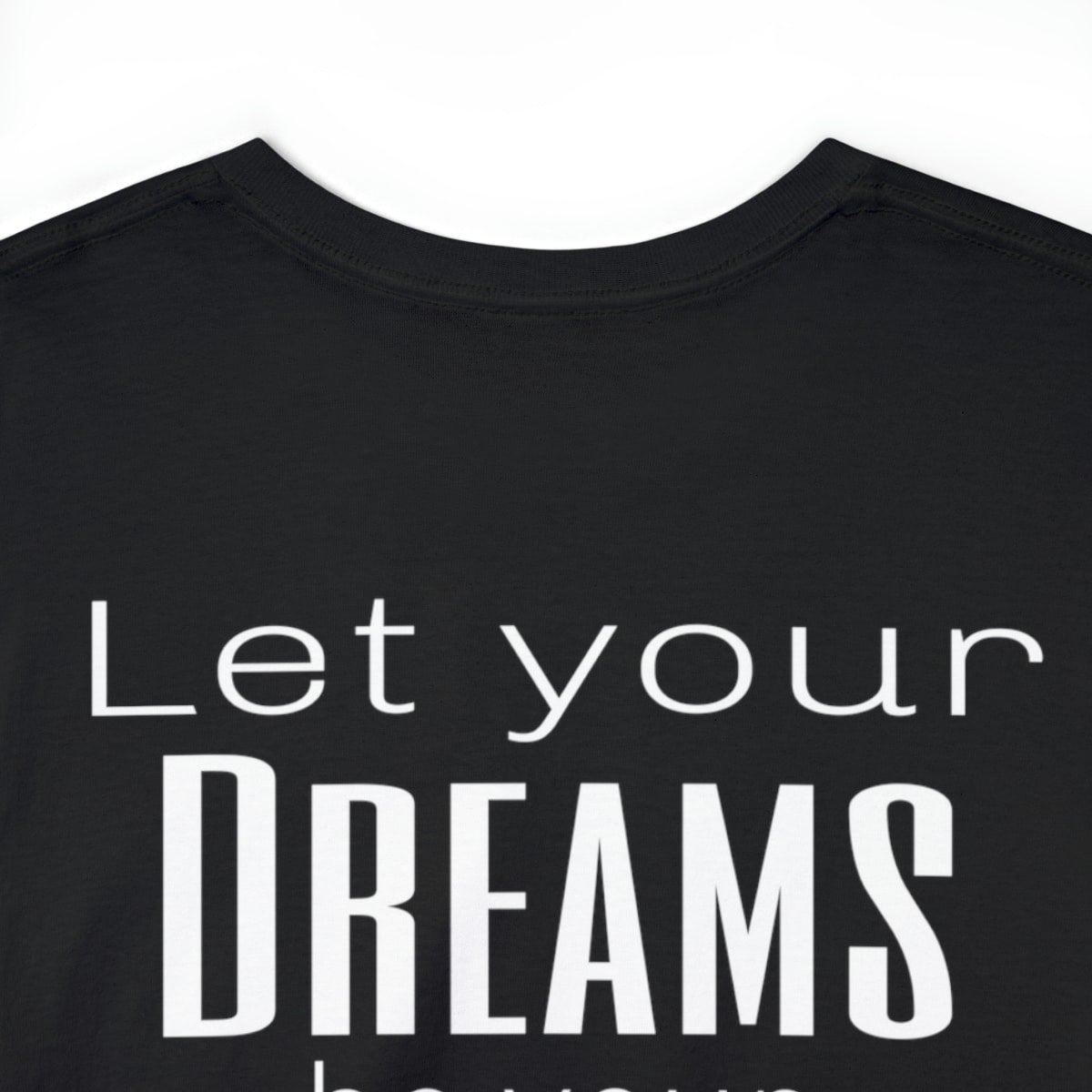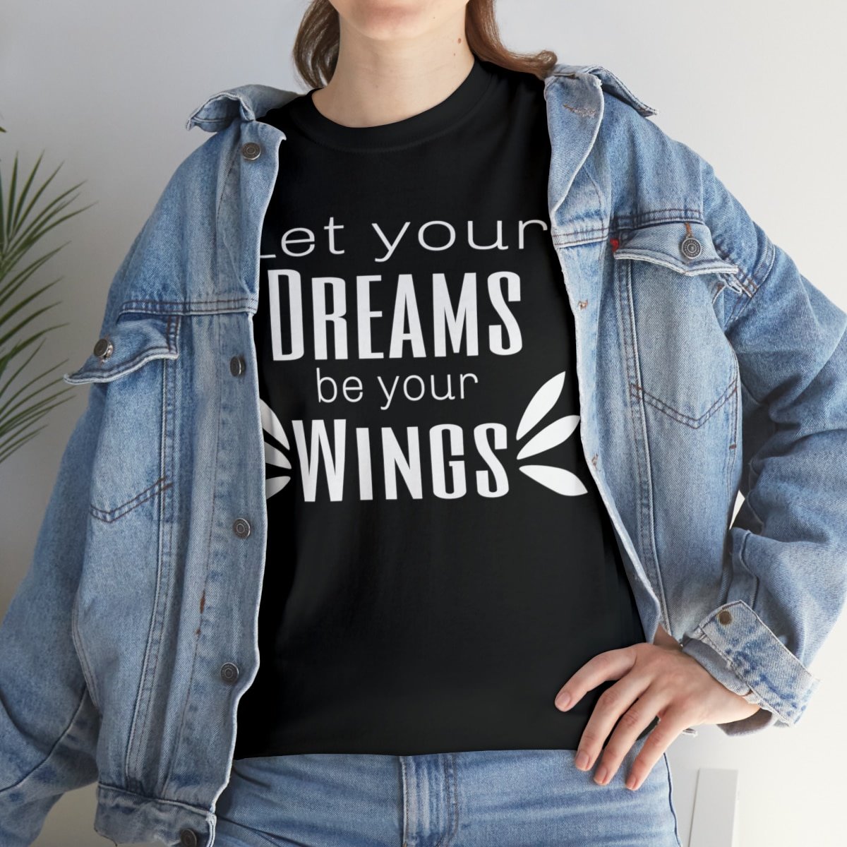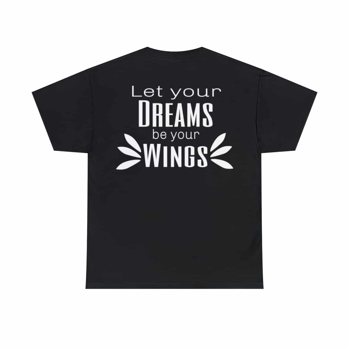 Dream big, and wear it too! Our Cotton Tee With Saying for Dreamers is designed to uplift and inspire you every time you put it on. With its elegant white typographic design that reads, “Let your dreams be your wings,” this tee is more than just a fashion choice—it’s a daily dose of motivation! ????