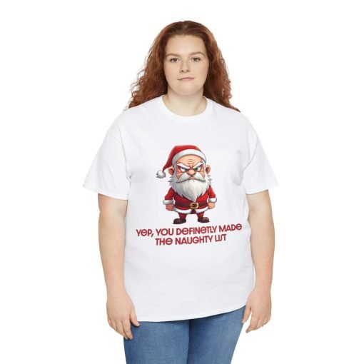 Our unisex heavy cotton tee is the cornerstone of any casual wardrobe. Crafted from 100% cotton (fiber content may vary for different colors), this shirt offers a smooth surface ideal for our premium printing techniques. The result? A vivid and sharp depiction of our funny, angry Santa that’s sure to turn heads.