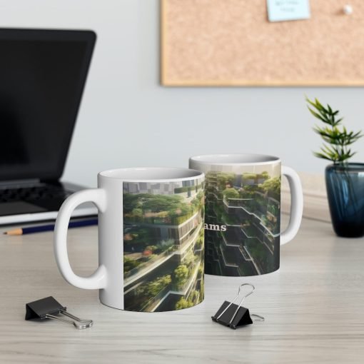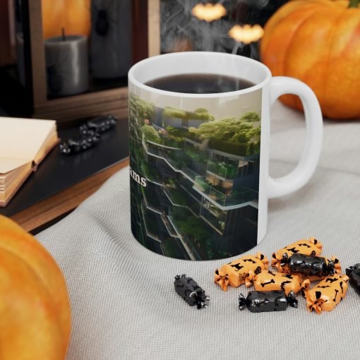 Beyond its visual appeal, the Sustainable Cityscape Ceramic Mug is dishwasher and microwave safe, making it a practical choice for those busy mornings and late-night warm drinks.