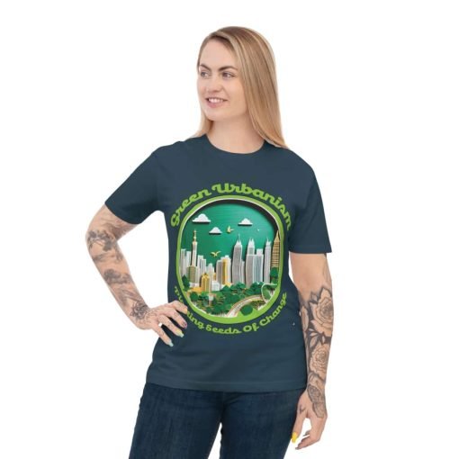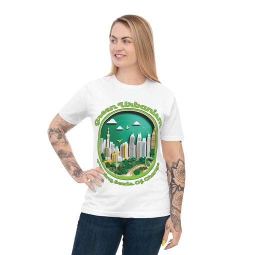 • Made from 100% organic combed cotton, ensuring eco-friendliness and a soft touch • Simple yet striking design featuring a cut-out green city illustration • Inspirational caption: “Green Urbanism: Planting Seeds of Change” • Available in various sizes and colors to suit all preferences • Excellent print quality that remains vibrant even after multiple washes