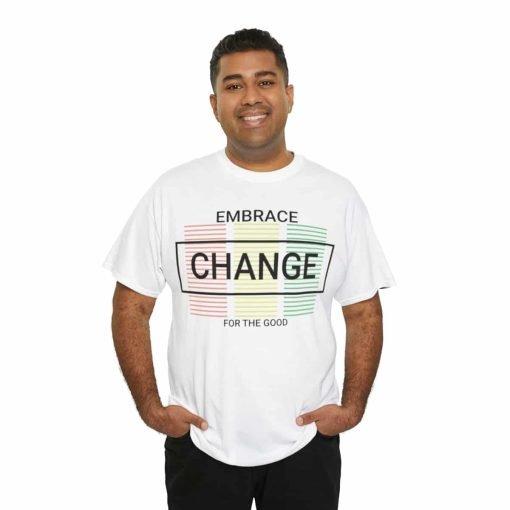 Looking to make a bold statement and inspire positivity wherever you go? Say hello to our Heavy Cotton Tee – Unisex – Embrace Change. This isn’t just another t-shirt; it’s a manifesto wrapped in cotton. The vibrant, colorful lines framing the uplifting caption “Embrace Change – For The Good” will catch eyes and spark conversations.