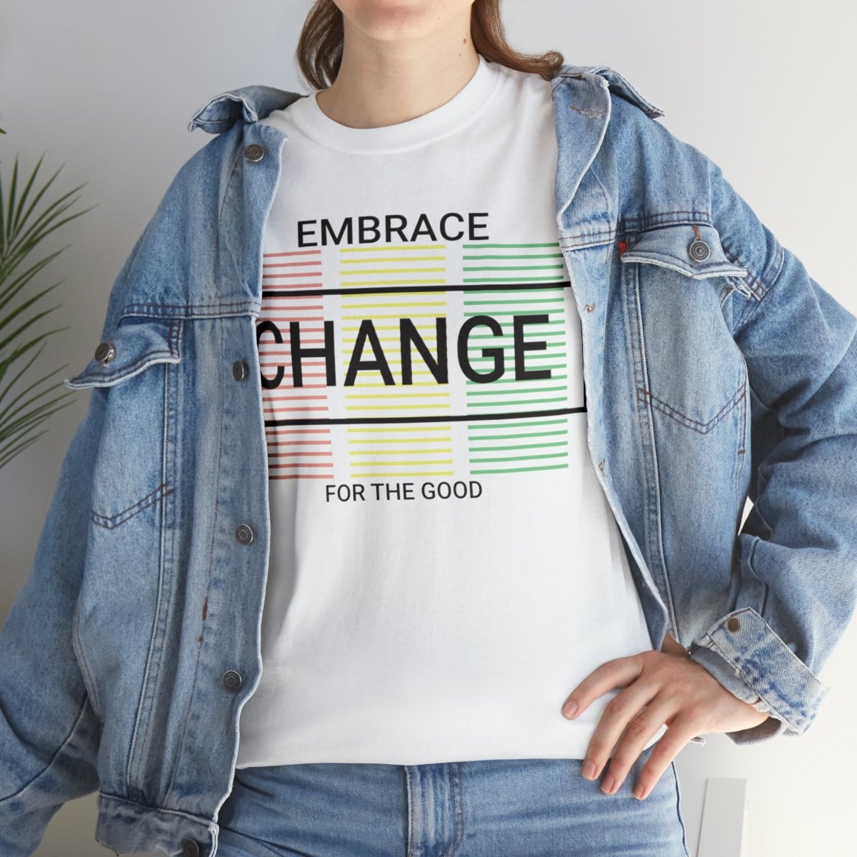 Looking to make a bold statement and inspire positivity wherever you go? Say hello to our Heavy Cotton Tee – Unisex – Embrace Change. This isn’t just another t-shirt; it’s a manifesto wrapped in cotton. The vibrant, colorful lines framing the uplifting caption “Embrace Change – For The Good” will catch eyes and spark conversations.