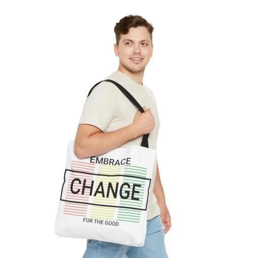 Looking for a bag that’s more than just a bag? Meet our Inspirational Tote Bag designed to uplift your spirit while serving its practical purpose. With vibrant lines framing the empowering caption ‘Embrace Change – For The Good,’ this tote bag is your daily dose of positivity. ????