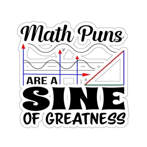 Are you a math whiz, or do you know someone who is? Elevate your geek chic with our Funny Math Pun Sticker – ‘Math Puns are a Sine of Greatness.’ This sticker packs a punny punch while adding mathematical flair to your life. It’s the ultimate combo of humor and brains, designed just for you!