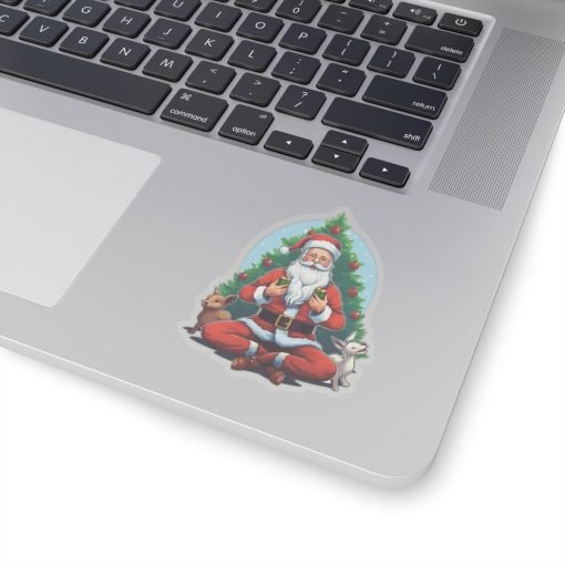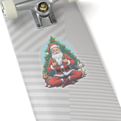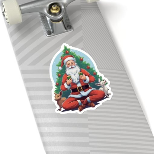 We know you’ve got cookies to bake and stockings to hang. That’s why these stickers are straightforward to apply. The kiss-cut design allows you to shape the sticker to your liking while keeping the back intact for hassle-free peeling. You can choose from white or transparent backgrounds, with a grey adhesive on the left side for white stickers. So go ahead and customize to your heart’s content! Enjoy your holiday season with a sticker that’s ideal for the occasion. Santa Claus is relaxed and ready for delivery after meditating all month.