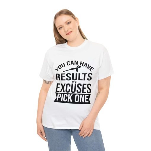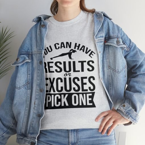 Step up your fitness game in style! Our “Motivational Workout Tee – No Excuses” isn’t just a piece of clothing; it’s a statement. Crafted for both men and women, this tee shouts, “You Can Have Results or Excuses – Pick One.” Talk about setting the tone for your workout!