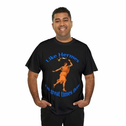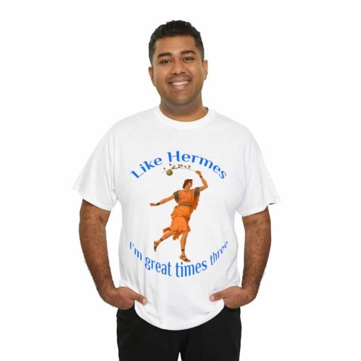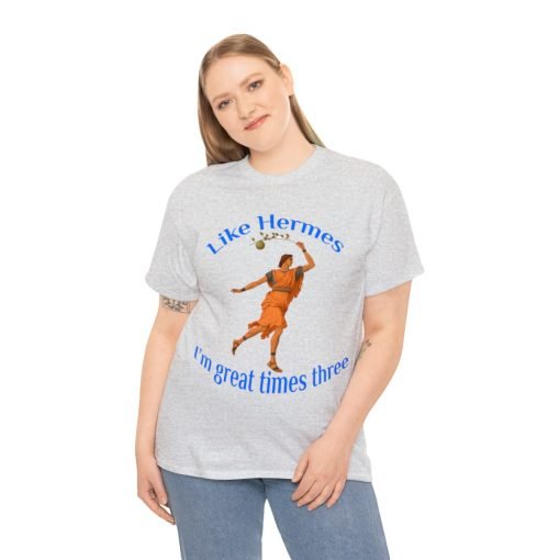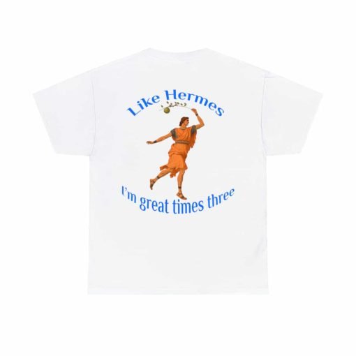 Ever wanted to blend intellect, humor, and fashion into one awesome package? Look no further! Introducing our Philosopher Pun Short-Sleeve T-shirt featuring an ingenious illustration of Hermes Trismegistus with the pun caption: “Like Hermes, I am great times three.” ????✨
