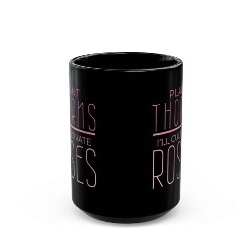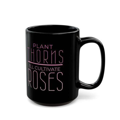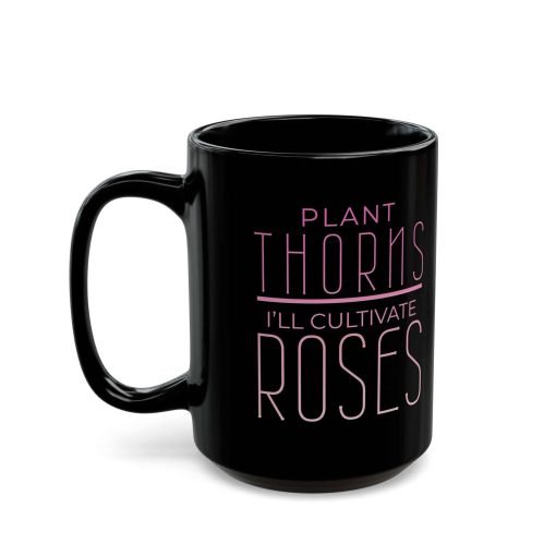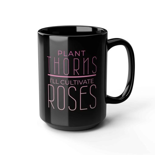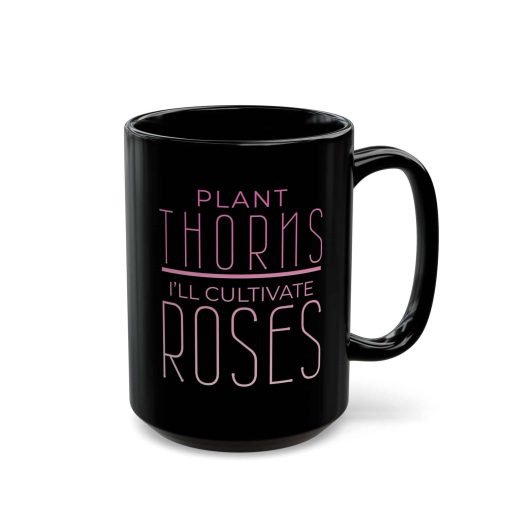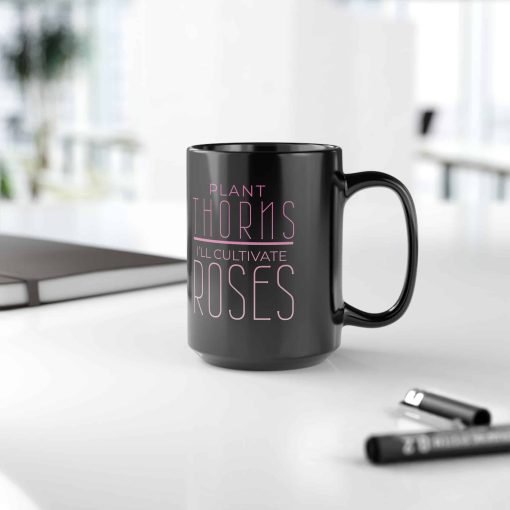 Whether at the office, at home, or gifting it to someone special, the “Plant Thorns I’ll Cultivate Roses” Black Mug is a daily reminder to stay positive and make the best out of any situation. Its unique design and high functionality make it a versatile addition to your kitchen or office space, suitable for any setting or occasion. This mug is not just a vessel for your drinks, it’s a versatile symbol of hope and perseverance that can adapt to any situation, just like you.