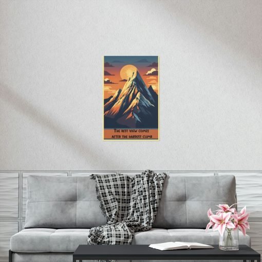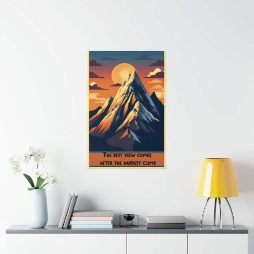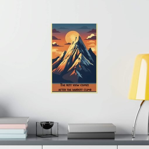 - ???? Elevate your motivation with our breathtaking “The Best View Comes After the Hardest Climb” Inspirational Poster! This stunning piece showcases a mesmerizing mountain peak, beautifully symbolizing the rewards of perseverance and determination.