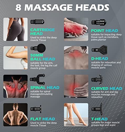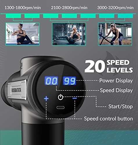- Musle Massage Gun: 8 massage heads & 20 speed levels & 1300 to 3,200 rpm, provide targeted treatment for every muscle group.
