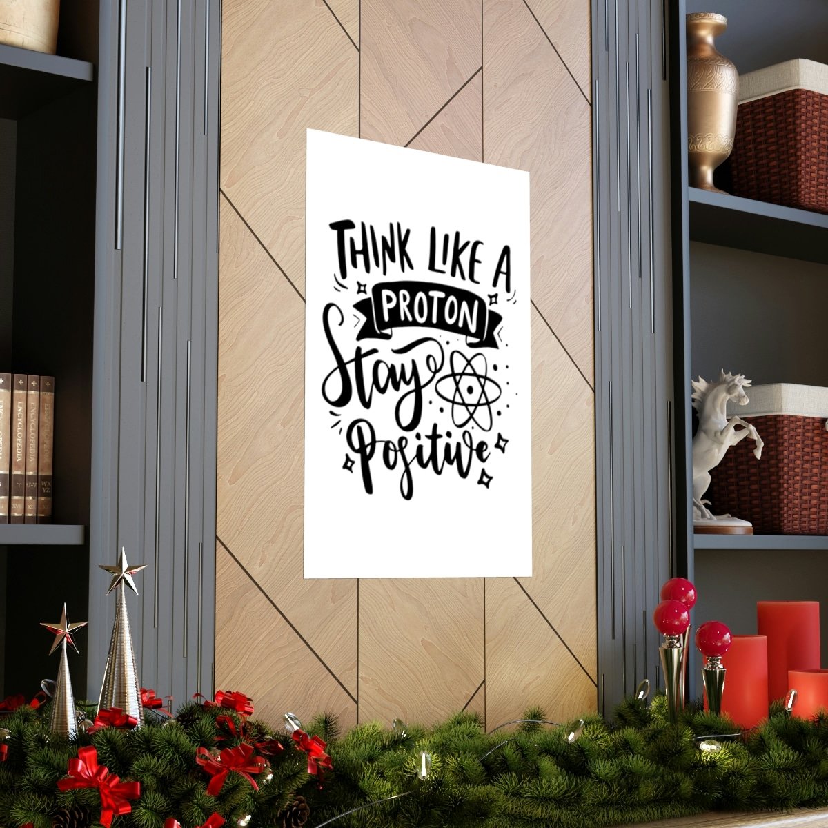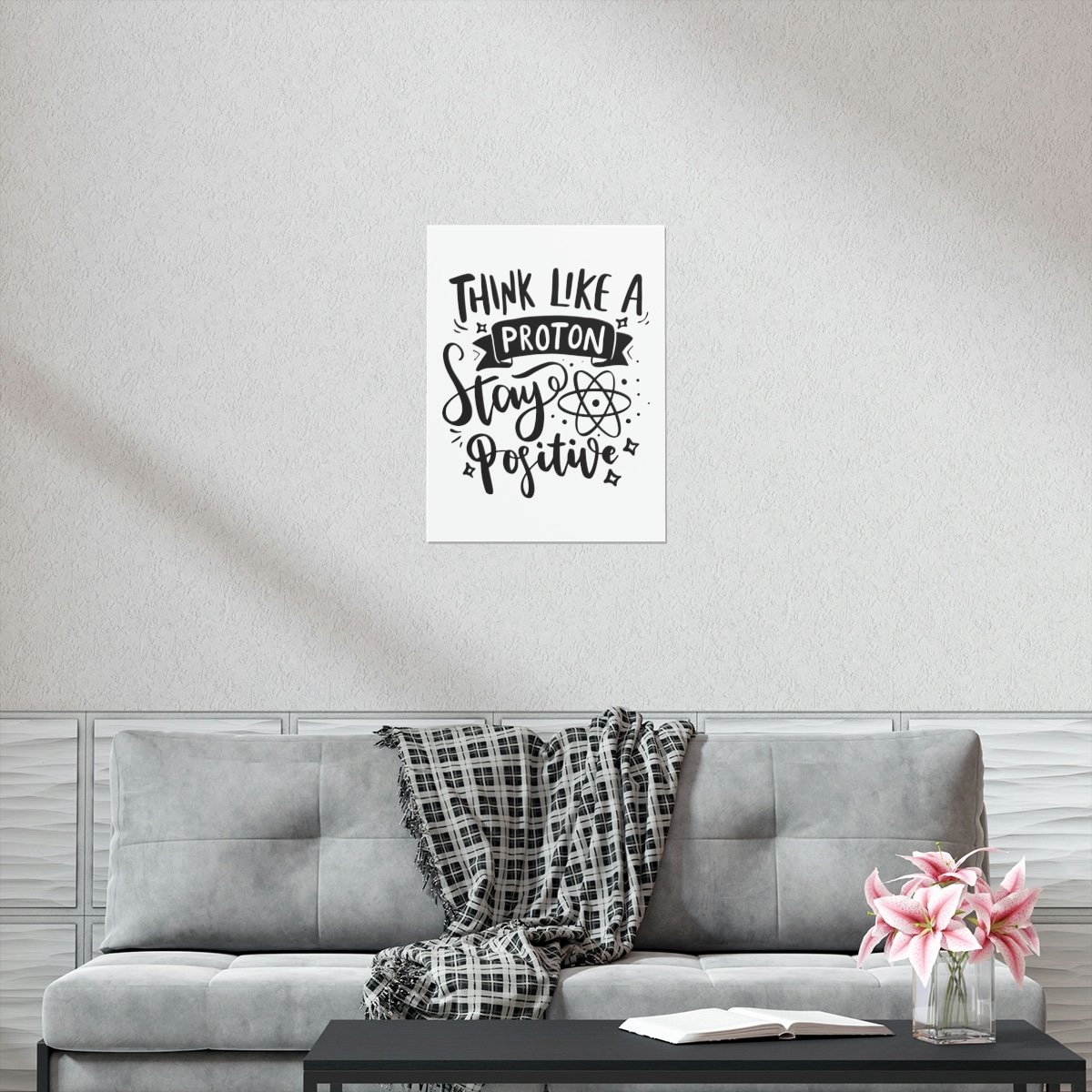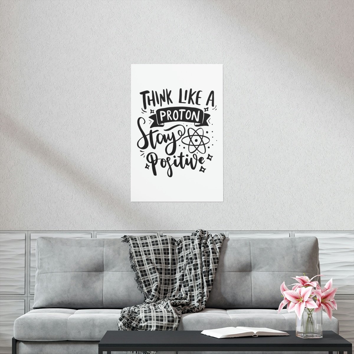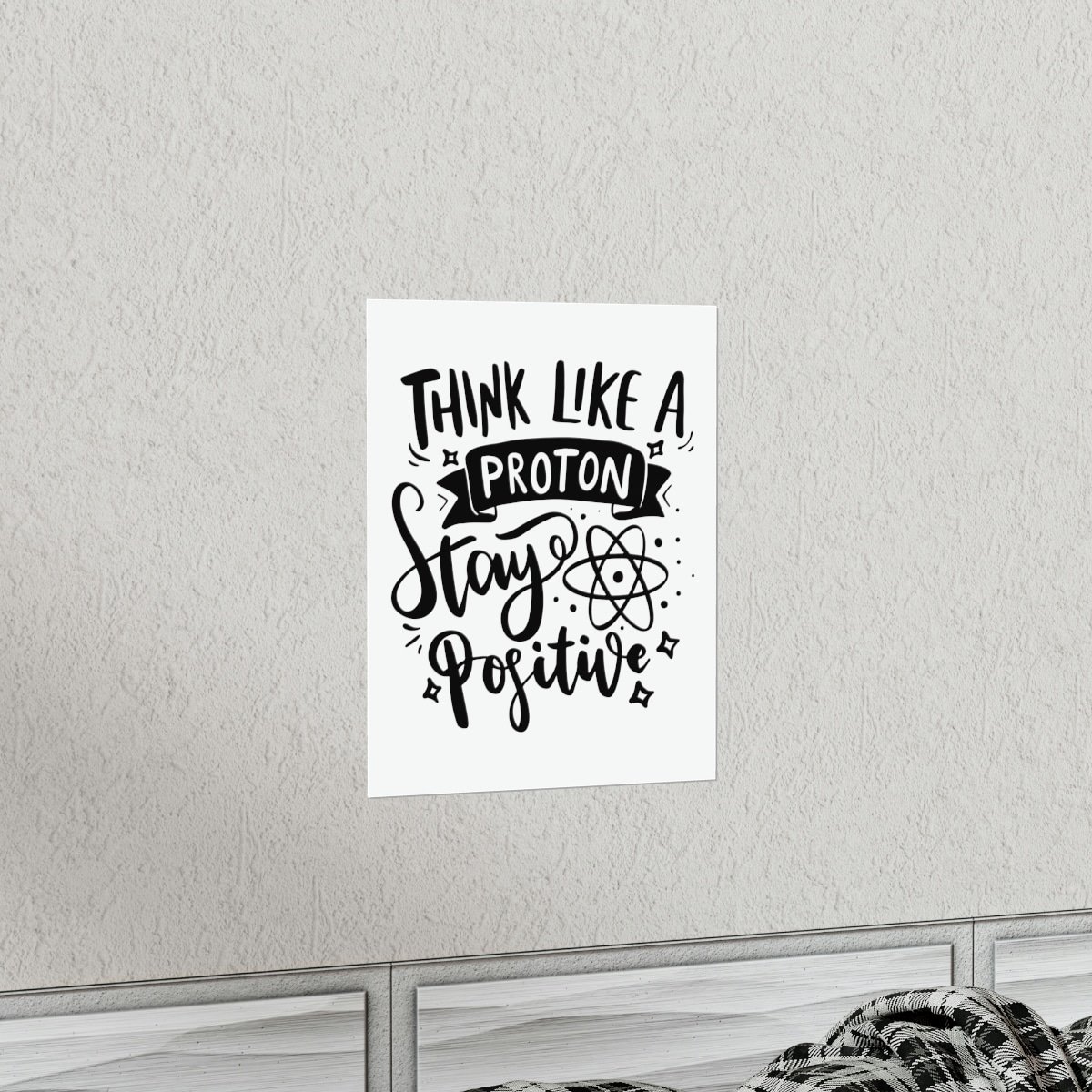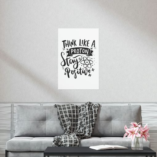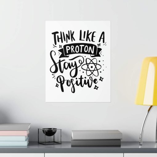 Transform your space with a touch of inspiration and positivity! Introducing our “Think Like A Proton Stay Positive” premium matte vertical poster – the ideal choice for adding inspiration to your home or office.