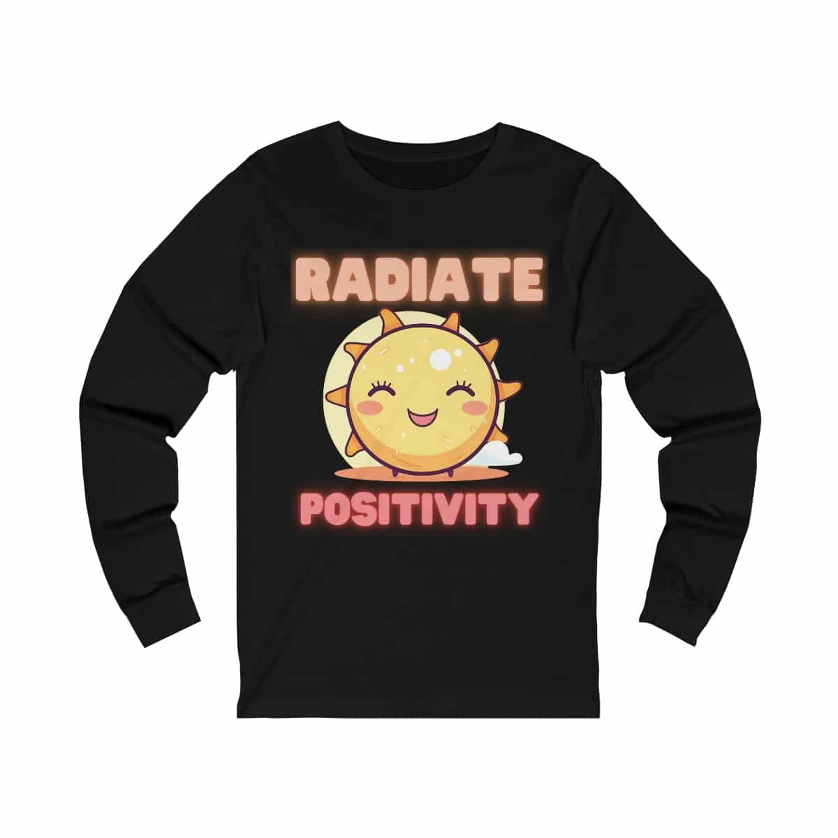 - ???? Unique Design: With a captivating illustration captioned “Radiate Positivity,” this tee promotes happiness and self-expression.