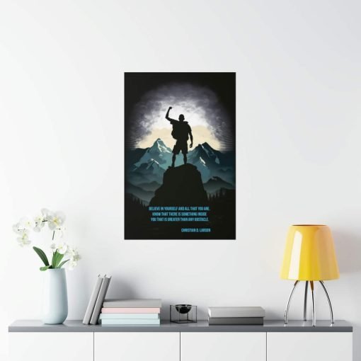 Introducing our “Unleash Your Inner Strength” poster, featuring an empowering quote by Christian D. Larson and an eye-catching mountain peak graphic ????. This premium matte vertical poster serves as a daily reminder to believe in yourself and embrace the power within you to overcome any obstacle ????.