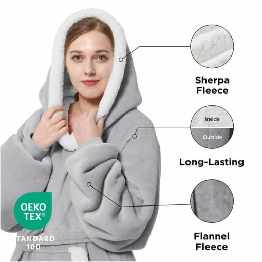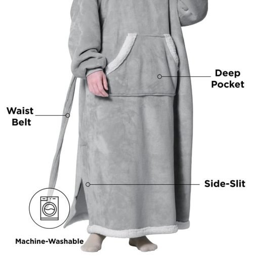 Wearable Hoodie Blanket – Oversized Pullover Sherpa Fleece Robe With Belt